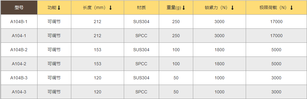 特點(diǎn):螺桿可調(diào)節(jié)從而改變安裝距和鎖緊力