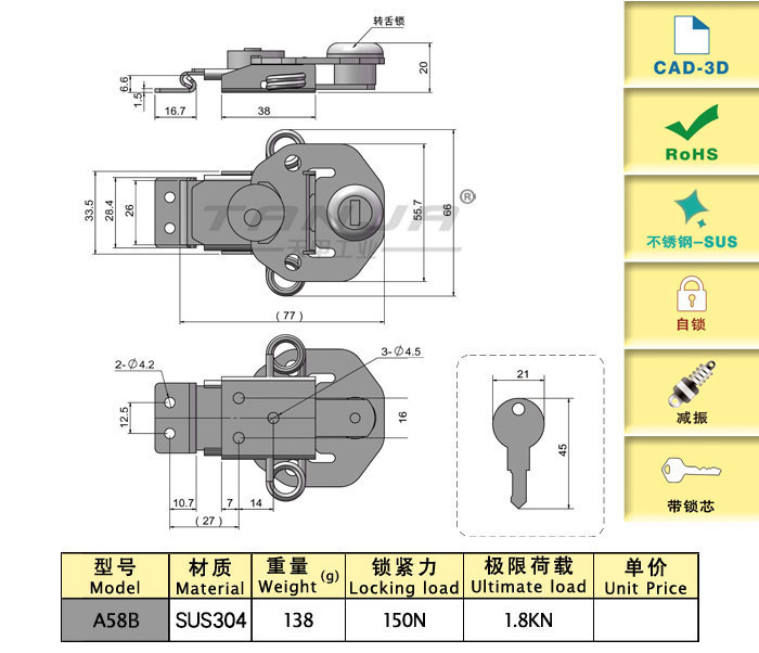 偏心自鎖結(jié)構(gòu),防止意外彈開(kāi)