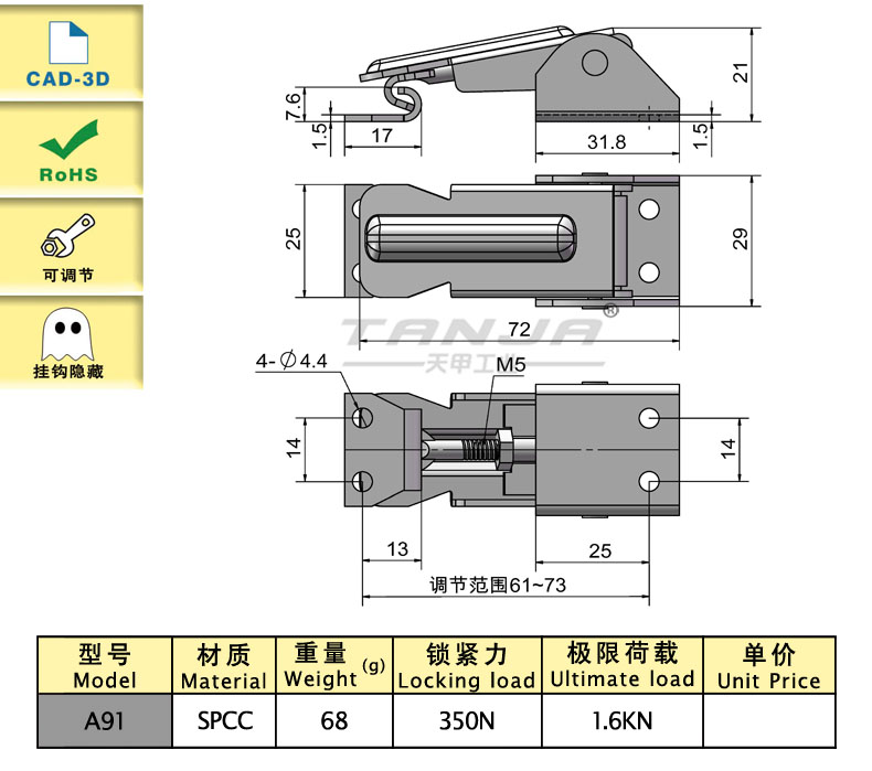 75 SPCC 46.52 350 1.6KN 內(nèi)扣式,可調(diào)節(jié)