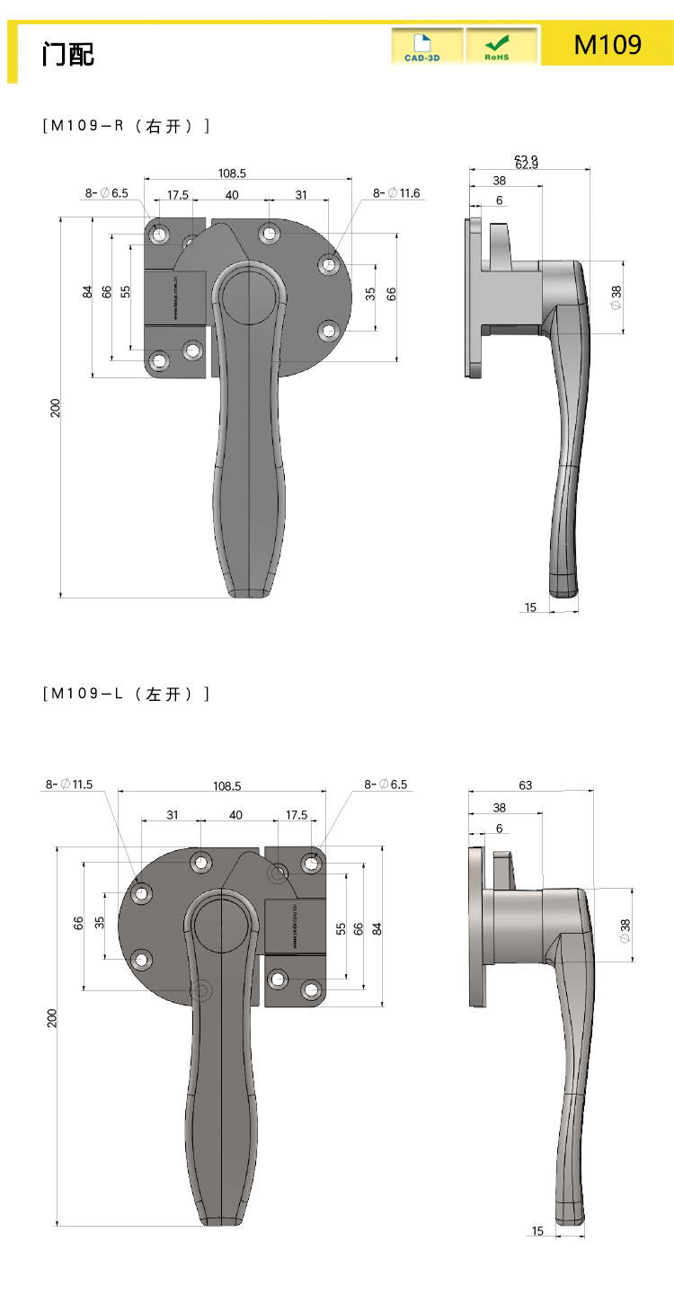 旋轉(zhuǎn)緊迫式密封,拉桿部分采用熱傳導(dǎo)率低的樹脂材料,右開用、左開用(圖紙和照片都為右開用)